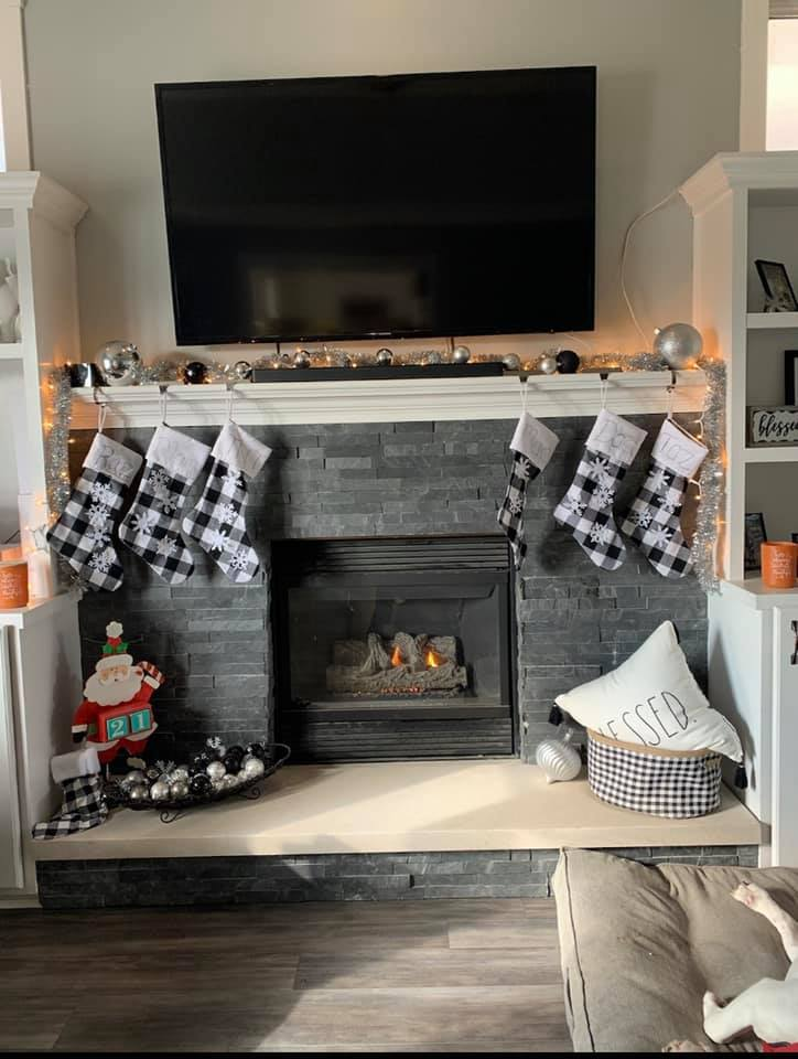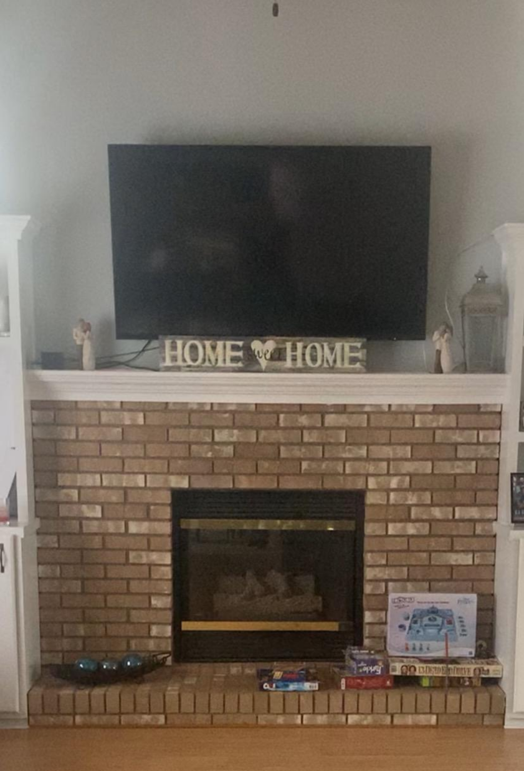 After: Fireplace with Real Slate Stone Veneer with Indiana Limestone Hearth Cap.
