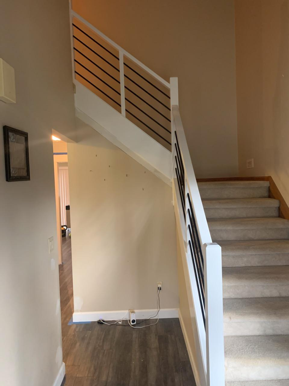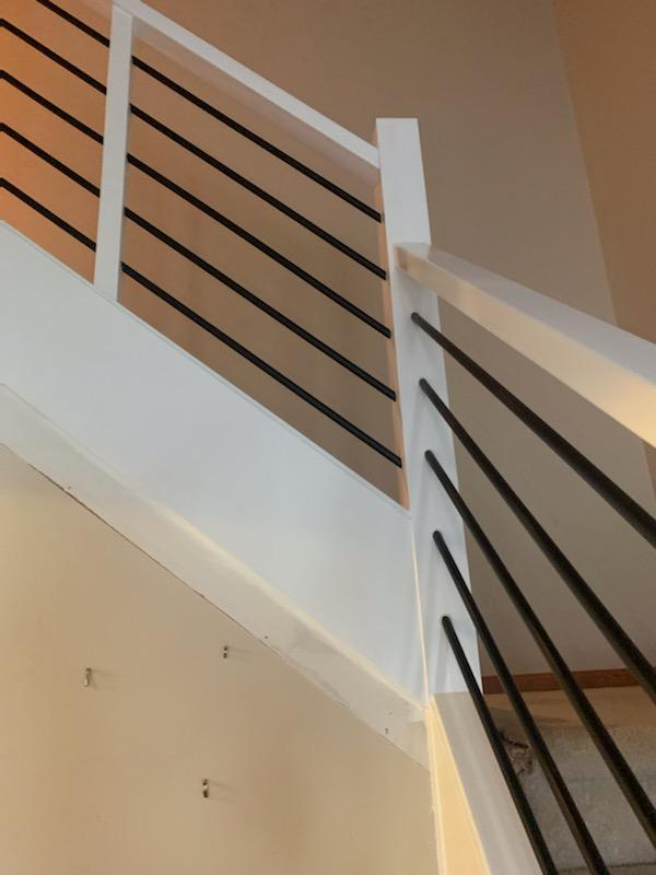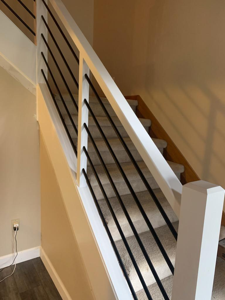 After: Contemporary, No-Seen Black Pipe Railing with Painted Components.